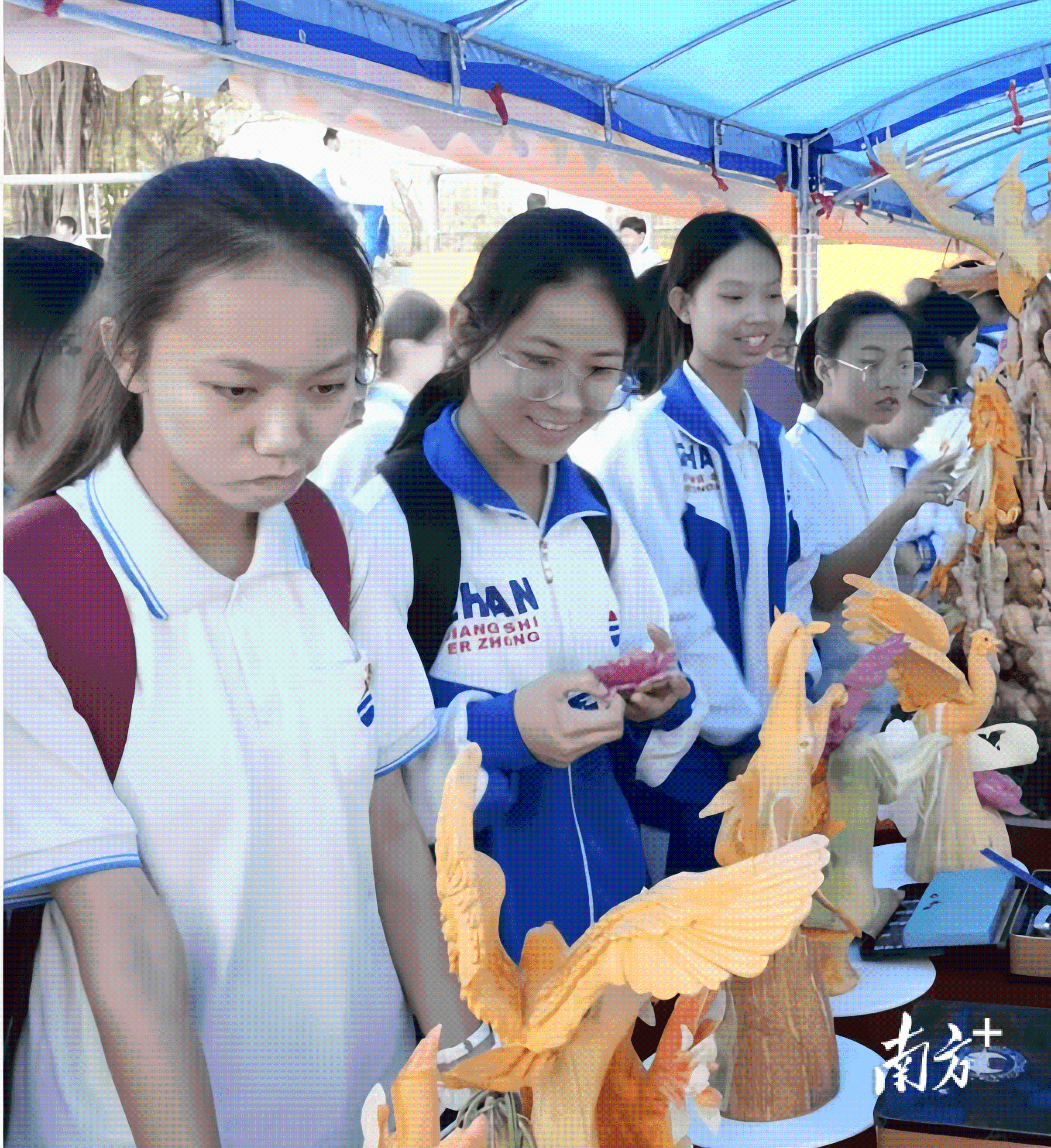 勾当后半程移步至学校排球场互动体验区。湛江市技师学院粤菜烹调大师戴文超率领学生团队现场展现食物雕镂、糖艺、面塑等非遗身手。萝卜雕花绽放、糖丝凝做彩凤,精深身手引师生连连奖饰。正在“小小雕镂师”体验环节,学生们正在大师指点下亲手测验考试果蔬雕镂取糖艺制做,正在劳动实践中工匠,加强对保守饮食文化的认同。